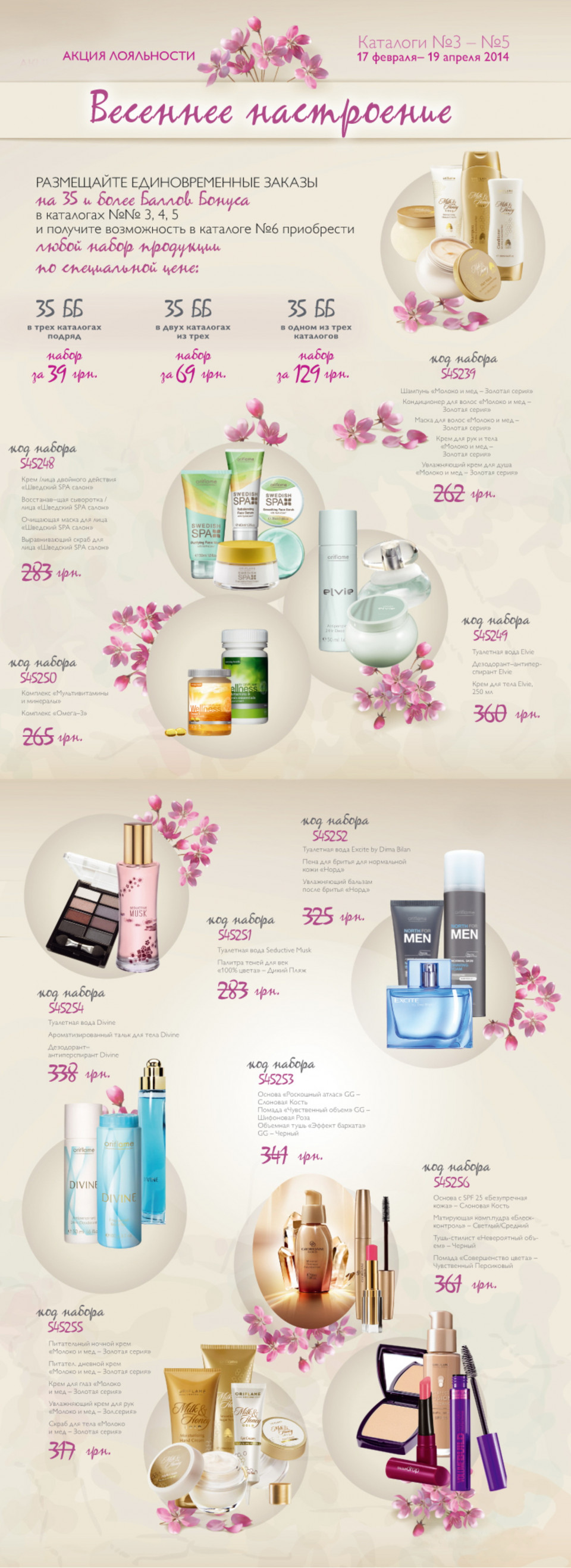 весны носит название «Весеннее настроение». Условия очень просты. Нужно всего лишь быть активным покупателем в течение трех весенних каталогов №№ 3-5 и